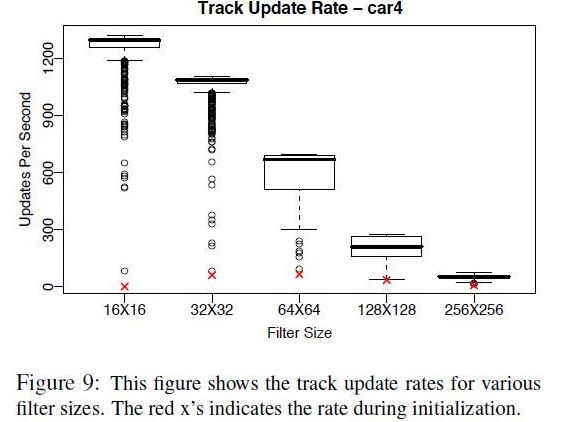 - section 3에서 제시된 증거는 이러한 task에 대해서 MOSSE가 가장 적합한 filter가 될 수 있다는 것을 나타내지만, 하나의 비디오 시퀀스에서의 단일 실패는 강력한 주장을 뒷바침하기에는 충분하지 않으므로 보다 많은 연구가 필요함.