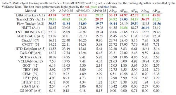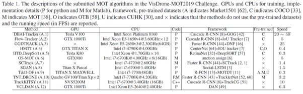 - VisDrone-MOT2019 Challenge에서는 총 12개의 알고리즘들이 제출됨.