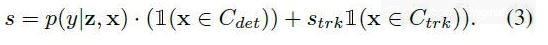 하나의 후보 x에 대한 통합된 scoring 함수는 아래와 같이 분류 확률과 tracklet confidence를 혼합시킴으로써 형성되어짐.