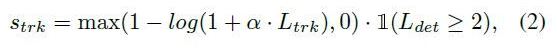 - 불확실한 tracks들의 후보들을 벌하기 위해(punish), s_trk ∈ [0, 1]가 되어야 함.