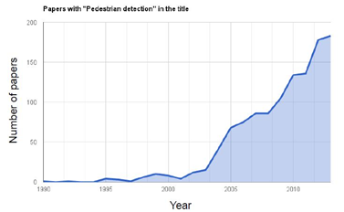 ● 논문 제목에 “Pedestrian detection”이 들어간 논문의 개수는 상당히 증가하고 있음.
