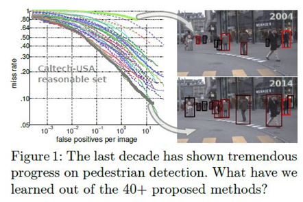 - 지난 10년간의 보행자 검출과 관련된 40개 이상의 detectors들에 대해서 Caltech pedestrian detection benchmark를 기반으로 분석함.