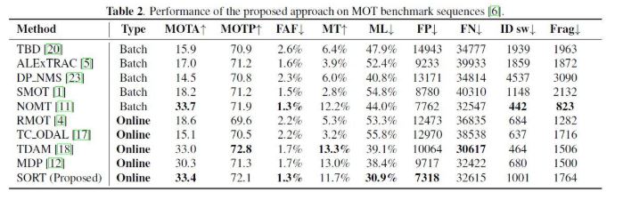 - 추적을 위한 구성 요소로서 칼만 필터(Kalman Filter) 및 헝가리안(Hungarian) 알고리즘과 같은 익숙한 기술들을 기본적으로 조합했음에도 불구하고, 최신의 온라인 tracker들과 비교할 수 있는 정확성을 보임.